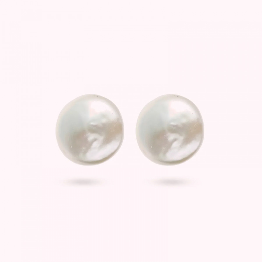 Orecchini Bronzallure a bottone realizzati in lega Golden Rosé, placcati oro rosa 18kt, impreziositi da due perle coltivate d'acqua dolce bianche con diametro di circa 10 mm. Chiusura a perno e farfalla.