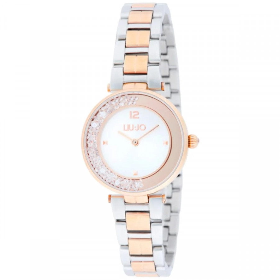 Orologio da donna solotempo con cassa in acciaio oro rosa e diamanti con un diametro di 29 mm. Il quadrante è color bianco con indici color oro rosa. Ha un vetro minerale e la resistenza all'acqua è di 3 ATM. Il cinturino è realizzato in acciaio e oro rosa con una chiusura deployante con doppio pulsante.