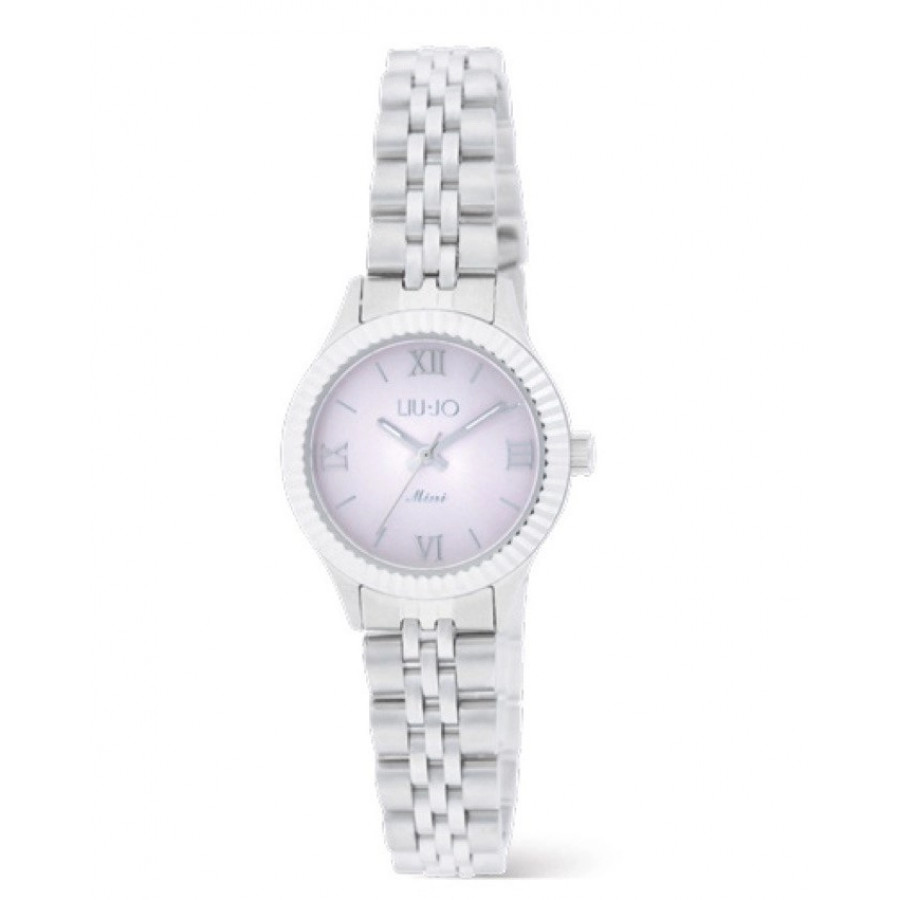 Orologio da donna solotempo con cassa e bracciale in acciaio del diametro di 26 mm e quadrante analogico rosa con indici romani silver. Numeri romani al 12 e al 6. La resistenza all'acqua è di 5 atm e il movimento al quarzo di tipo Miyota cal. 2035. Vetro minerale.